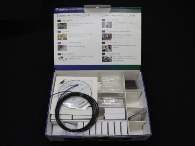 Contém um conjunto de experiências que poderão ser utilizadas em sala de aula para reforçar os conhecimentos adquiridos pelos alunos sobre as propriedades da luz e o seu uso nas telecomunicações, a perceção das cores, refração, lentes e telescópios, comparação entre o olho humano e as câmaras digitais, difracção e interferência, polarização da luz. Este kit constitui uma valiosa ferramenta para estimular e gosto e interesse em carreiras de ciência e a engenharia. Vem acompanhado com um CD com sugestão de experiências . Foi desenvolvido no Ano Internacional da Luz.